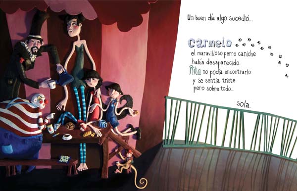 “Por otro lado ‘¿Dónde esta Carmelo?’ es un proyecto personal inédito. Con este libro experimenté no sólo la ilustración, sino también la escritura, e intenté conjugarlos para generar un resultado más interesante. Fue una de mis primeras experiencias, así que deposité en él muchísimos deseos.”